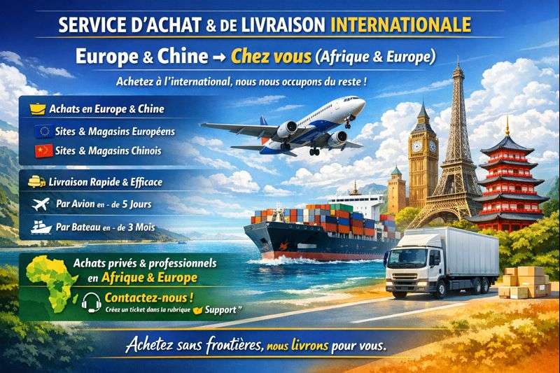Nous vous accompagnons dans l’achat de vos produits en Europe et en Chine, que ce soit sur des sites en ligne ou dans des magasins physiques. Destiné aux particuliers comme aux entreprises, notre service prend en charge l’achat, la logistique et la livraison jusqu’à chez vous, en Afrique ou en Europe.