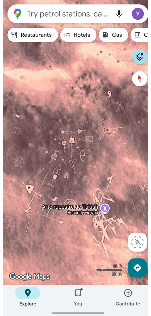 Je vérifiais sur Google Maps et j’ai trouvé ces énormes dessins dans le désert près de Arte rupestre de Takish. Certaines ont plus de 30 mètres de large. Quelqu’un sait ce que c’est? présenté par /u/Appropriate-Click396. [lien] [commentaires]